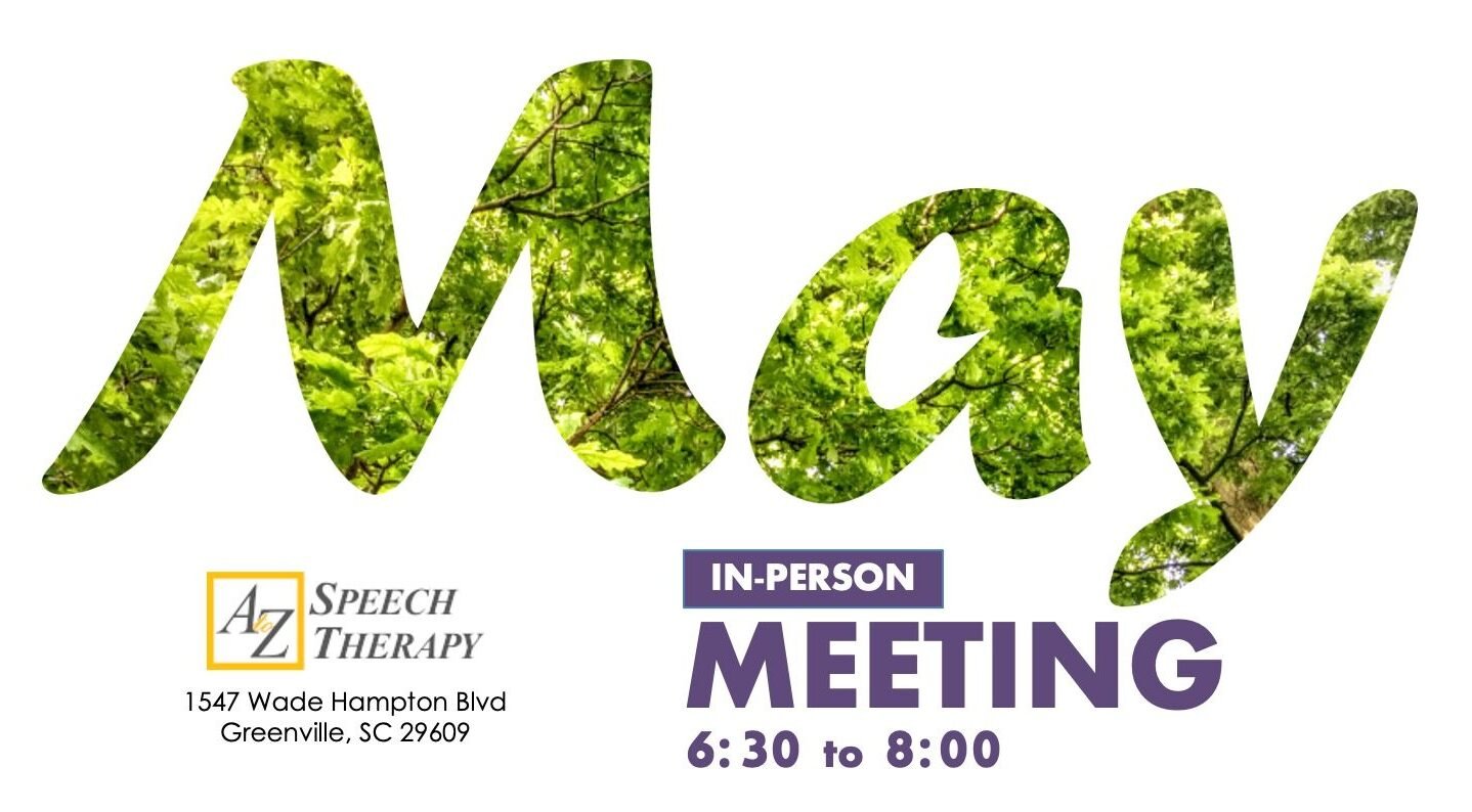 We meet on the first Thursday of every month over Zoom or at A to Z Speech Therapy.